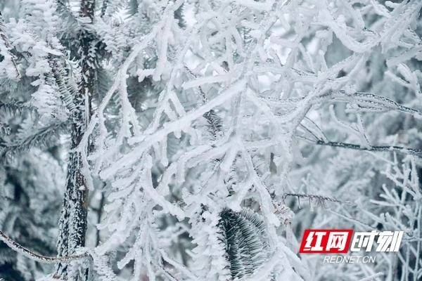 在门楼下瑶族乡竹林坪村高海拔山区,目之所及齐是玉树琼枝的盛景。树木被冰晶层层包裹,枝蔓凝霜、叶片裹冰,低矮的灌木丛被厚密的冰晶隐私,山间潸潸缭绕,与雾凇景不雅交相照映,晶莹晶莹的冰雪宇宙宛如童话秘境,不少旅客与影相认真者不畏严寒,赶赴玩赏2026年的第一场雪景。