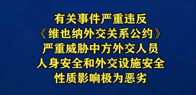 搪塞部发言东说念主林剑的表态义正言辞:该事件严重违抗《维也纳搪塞相干契约》,严重禁止中方搪塞东说念主员东说念主身安全和搪塞样式安全,性质影响极为恶劣。