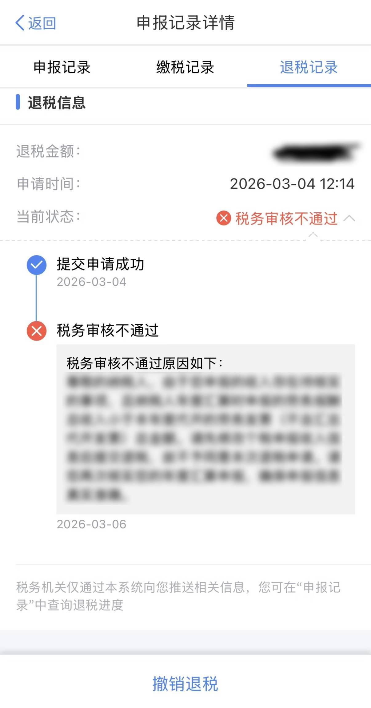 “税务审核欠亨过”默示您的陈述信息存在问题,税务机关会在个税App内部列明审核欠亨过的原因,您不错在个税App中实时张望,并对陈述数据进行搜检、修改、完善,证明无误后从头提交陈述。
