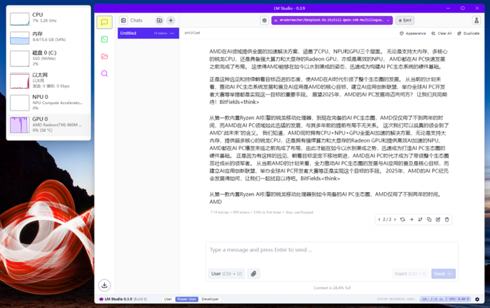 ▲使用锐龙AI 7 PRO 350内置Radeon 860M进行AI揣摸