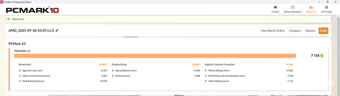 ThinkPad T14 Gen6锐龙版搭载锐龙AI 7 PRO 350处理器、32GB DDR5 5600内存和PCIe 4.0×4 SSD,在PCMark 10 当代办公测试中的总分达到7136分,这个性能水平照旧堪比主流8核办公台式机,而能效却技艺前好多。