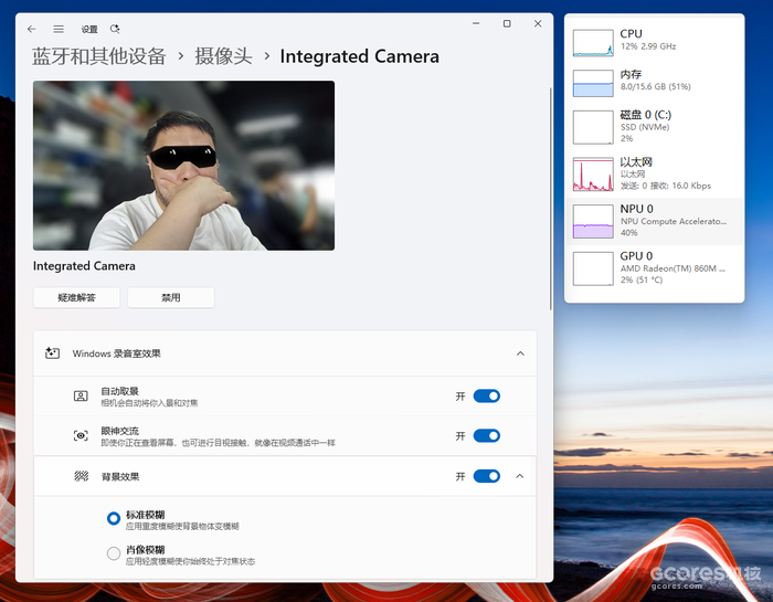 ▲微软灌音室着力可通过NPU进行处理,可以看到NPU的占用率达到40%